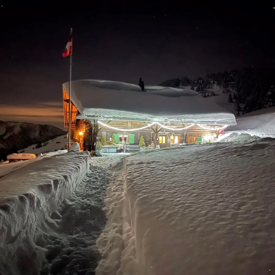 Follow the mountain pasture road "Route de Champsot" all the way. The first section is cleared of snow until the last chalets area. This side of Morgins enjoys the most sunshine in winter and a beautiful view of the Dents du Midi and the Vaud Alps.